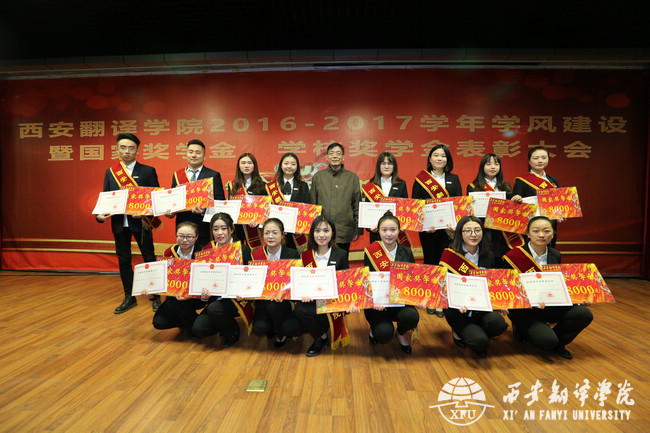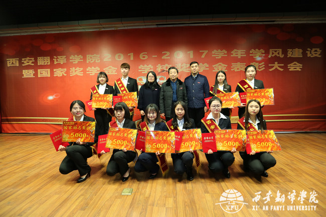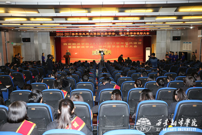 12月21日下午,西安翻译学院2016—2017学年学风建设暨国家奖学金、学校奖学金表彰大会在终南大讲堂举行。校长韩江水,副校长兼教务长齐玉水,党委副书记、工会主席王小惠以及相关职能处室负责人、部分二级学院副院长等出席本次大会。部分师生代表到场参加。大会由党委副书记、副校长郭炜主持。