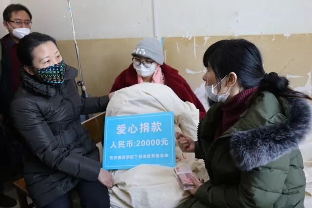 爱心捐赠,情暖校园。1月29日我校mobile38-365365理事长、党委副书记、工会主席王小惠,以及相关志愿者老师,院系老师一行,在西安交通大学第二附属医院看望江敏同学并进行爱心捐赠。